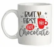 Mok met de tekst but first hot chocolate.